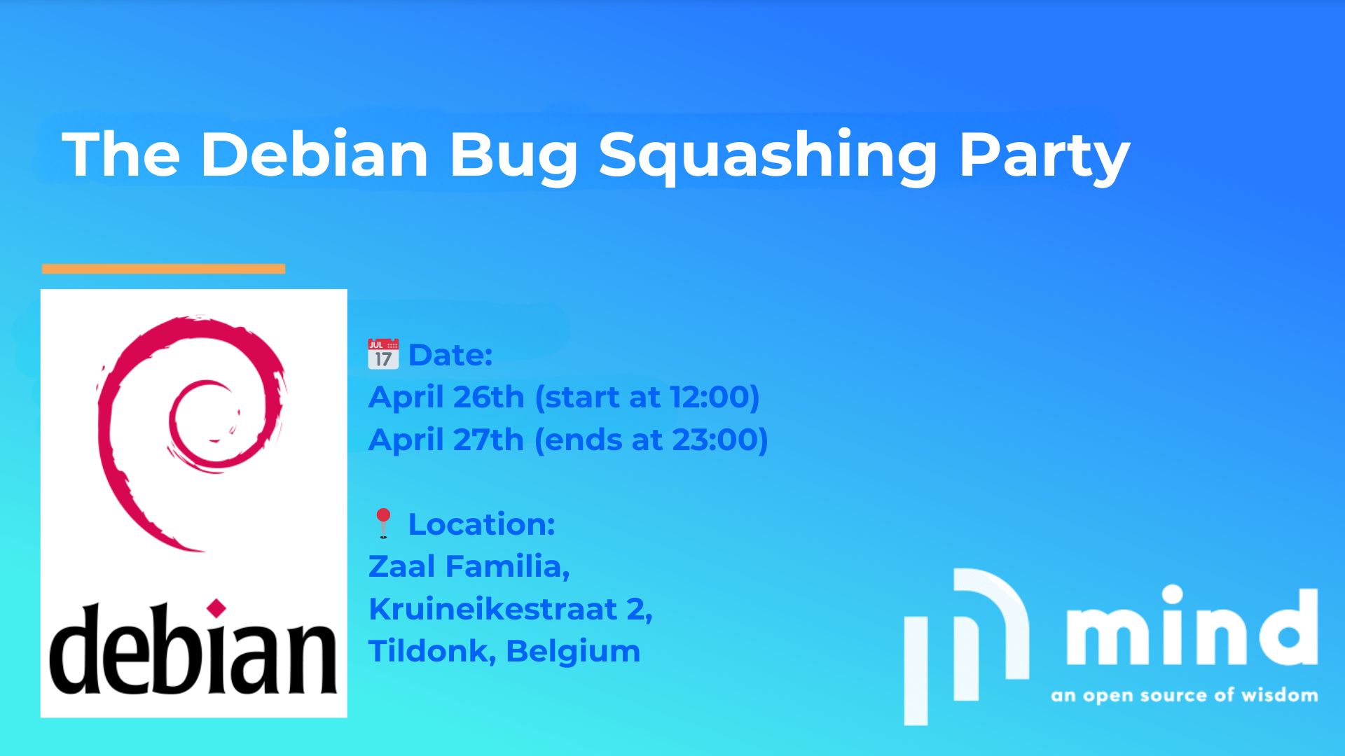 Our colleague Ben Hutchings and his colleague Geert Stappers is organizing a Debian Bug Squashing Party during the weekend of April 26th and 27th in Tildonk, Belgium! 🐛🐧