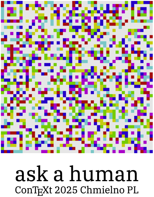 As in previous years, anything at all related to ConTeXt & LuaMetaTeX that you would like to share as a presentation, tutorial, discussion, Q&A session, demonstration, workshop, recital, sketch, or sermon.